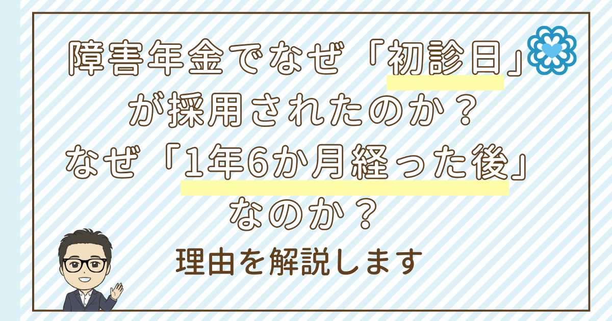 障害状態に該当していれば、障害年金がもらえるのはよく分かる。でも、なぜ初診日?なぜ1年6か月経った後なの?